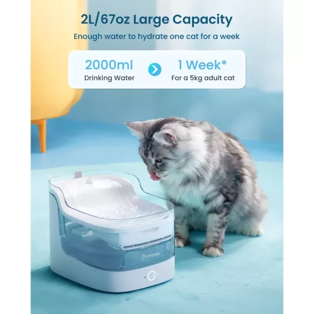 Introducing the perfect solution for pet owners seeking to enhance their cat’s hydration with the latest in technology and health benefits. Our 2L Smart WiFi Pet Water Fountain offers an exceptional combination of style, functionality, and peace of mind. Crafted with your pet’s health and safety at the forefront, this innovative water fountain promises to keep your cat hydrated and healthy with its advanced features and smart design.