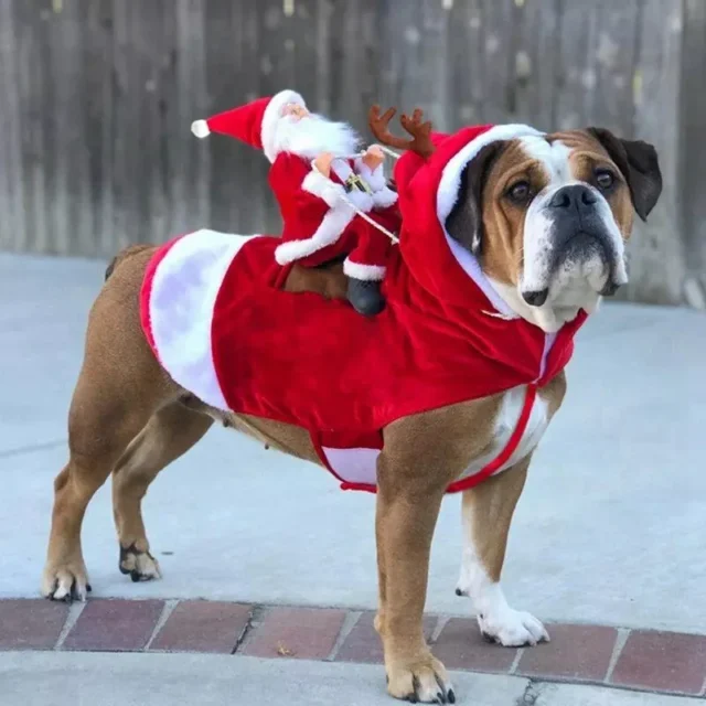 Transform your beloved pet into the highlight of your Christmas celebrations with our Adorable Christmas Dog Costume, featuring an imaginative Santa-Claus-riding-a-deer design. Crafted for comfort, style, and a big splash of holiday spirit, this costume is perfect for family gatherings, holiday photoshoots, or simply spreading cheer during your winter walks. Embrace the festive season with a touch of whimsy that fits right at home under the twinkling lights of your Christmas tree!