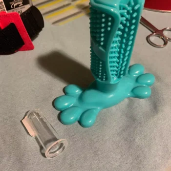 This is a fantastic invention for cleaning a dog's teeth. I just load it with doggy toothpaste every few days.