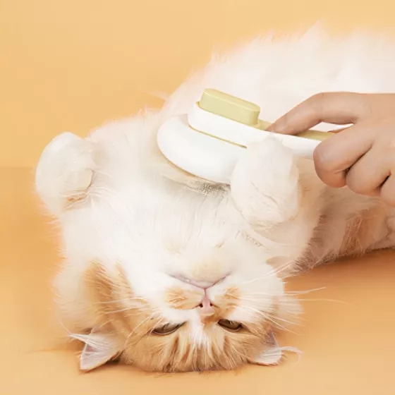 I bought this brush for my cats, they loved it so much. It's easy to use and it collects so much hair quickly, you don't have to press hard brushing, just a gentle brushing does the job, then it's easy to clean the brush and remove the hair. It's a sort of therapeutic activity. Just get it for your pets. They'd love it.