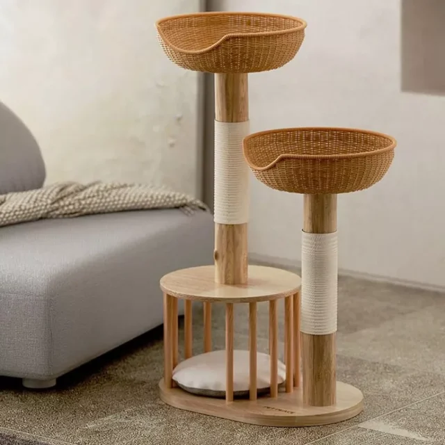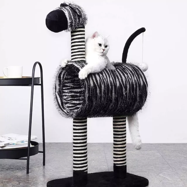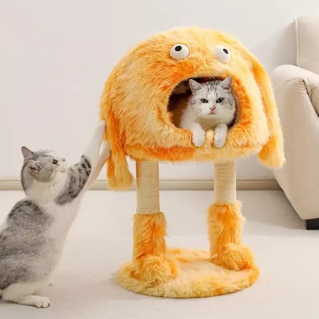 Our cat tree stands out for several reasons. Firstly, it’s constructed with high-quality cloth material, ensuring durability and long-lasting enjoyment for your pet. The double-tier design offers ample space for exploration and lounging, while the sisal rope covering provides the perfect texture for your cat’s scratching needs. The hanging ball adds an extra layer of entertainment, keeping your feline friend engaged and active.