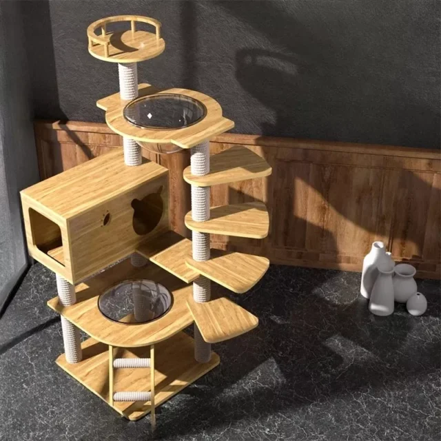 Our cat tree stands out with its dual-tier design and array of features designed specifically for your cat’s enjoyment and well-being. The integrated climbing toys and claw sharpener make it a multifunctional piece that provides endless entertainment and care for your cat’s claws. Crafted for durability and style, it fits beautifully in any home setting, offering a special place for your cat to call their own.
