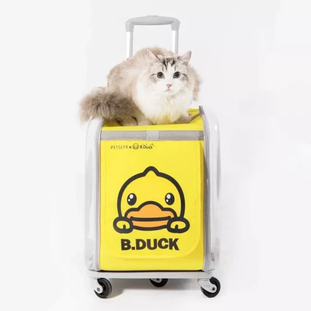 Our Extendable Pet Transport Trolley Bag is made from high-quality polyester, EVA, and PET for the transparent plate, with an all-aluminum pull rod for maximum durability. It’s suitable for cats up to 18 jin (approximately 9kg) and dogs up to 12 jin (approximately 6kg), and it weighs only 1.3kg for the pet bag and 1.36KG for the pull rod. Its medium soft hardness ensures your pet’s comfort during travel, while the animal pattern and luggage model transparent bag design offer a stylish look.