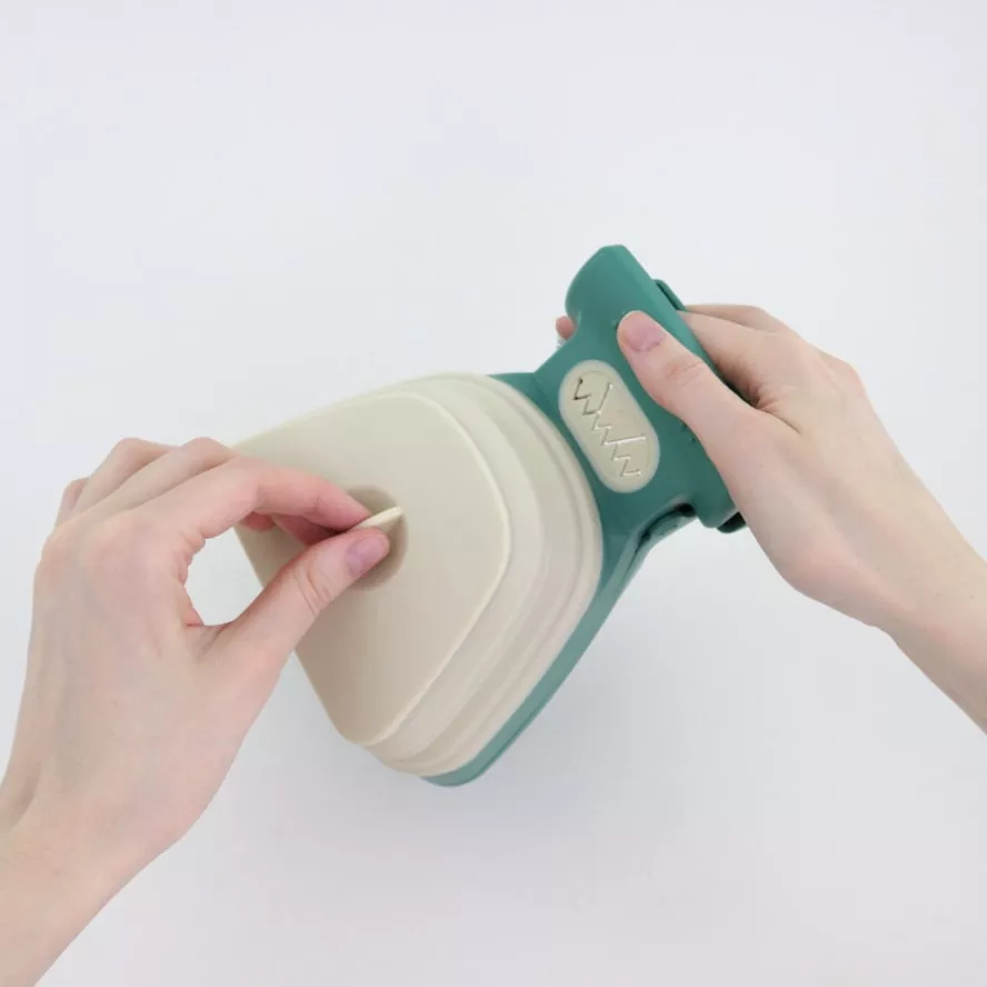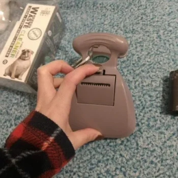 This thing seems silly to have, but it is a big help. No more warm squishy feeling when picking up after my dog. I love that it works with standard poop bags since I have so many of them. It’s a huge plus that this thing stays clean too. Simply put this device into a poop bag, open it, push the bag into the “jaw” and secure it in the silicone teeth. Once you’re done picking up, you can simply leave the jaw closed, pull the back back around the device, and tie it then open the jaw over the trash and boom, mess averted.