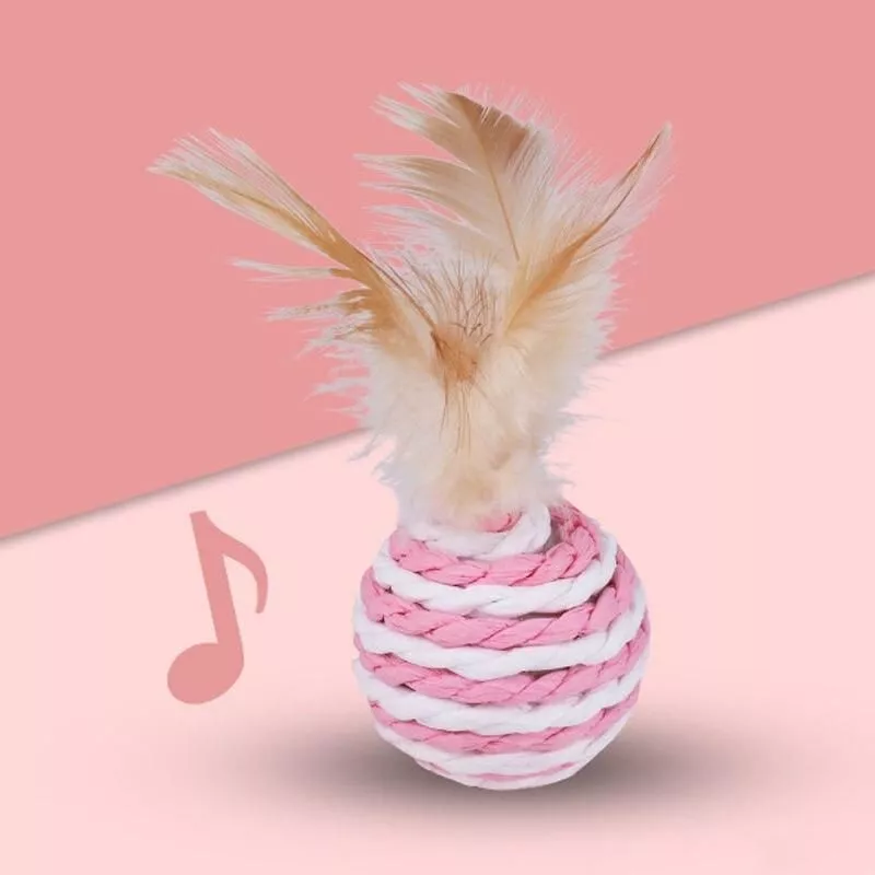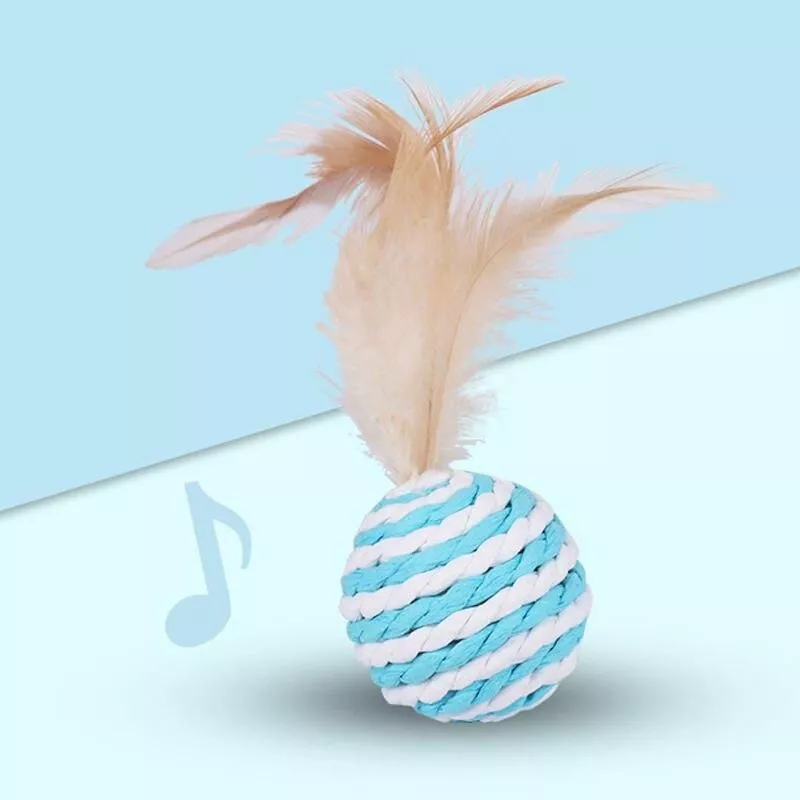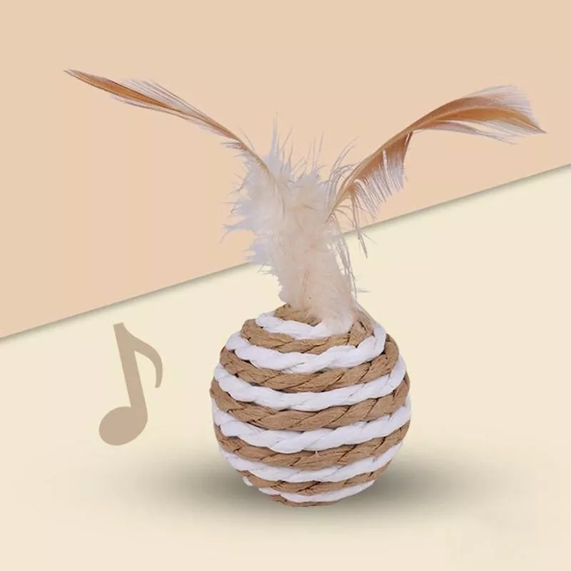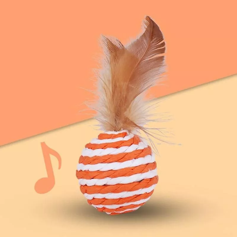 Introduce your cat to a world of excitement and activity with our Interactive Sisal and Feather Cat Toy. Designed to stimulate your cat’s natural hunting instincts, this toy combines the thrill of the chase with the joy of interactive play. The striped sisal ball, adorned with enticing feathers, is perfect for batting, biting, and chasing, providing endless fun for your furry companion.