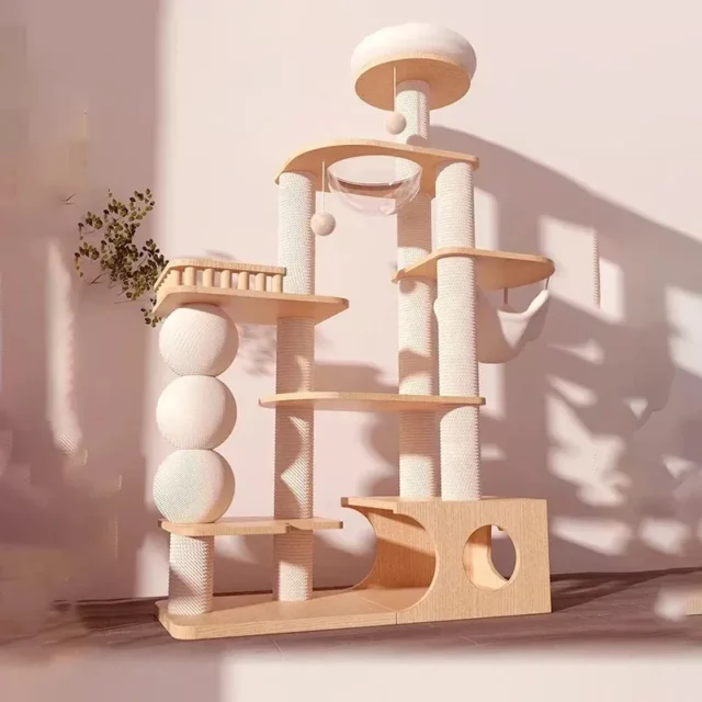 What sets our cat tree apart is its combination of functionality, quality, and design. With its smart interactive toys and multiple tiers, it provides endless entertainment and exercise opportunities. The use of high-quality wood ensures its longevity, making it a lasting investment in your cat’s well-being. Plus, the inclusion of cozy resting areas ensures your cat has the perfect spot to unwind. It’s not just a cat tree; it’s a comprehensive play and rest solution that your cat will adore.