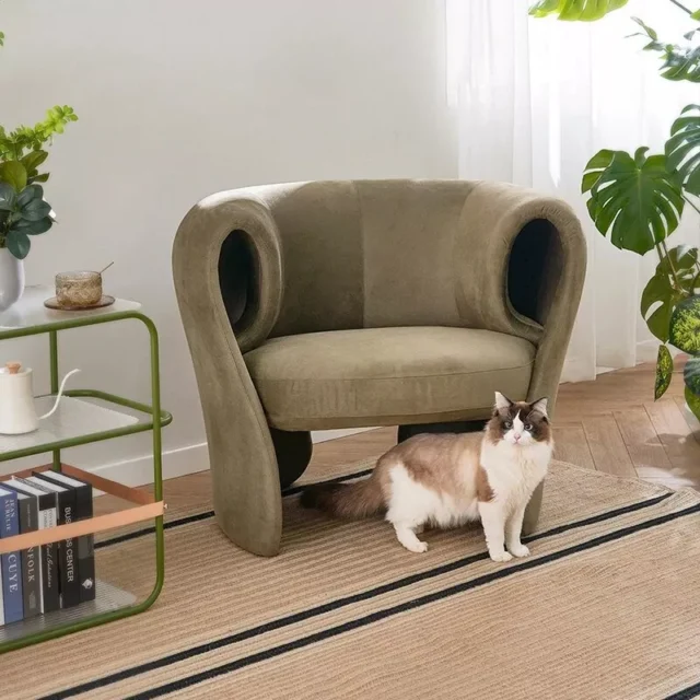 Our pet sofa stands out for its superior craftsmanship and thoughtful design. Perfect for lounging, sleeping, or simply observing their surroundings, it offers your cat a snug and secure space. The modern minimalist style is not just a treat for your pet but also an elegant addition to your home decor. Whether in the chic Laurel Green or the soft Peach Powder, it promises to be a cozy haven your pet adores.