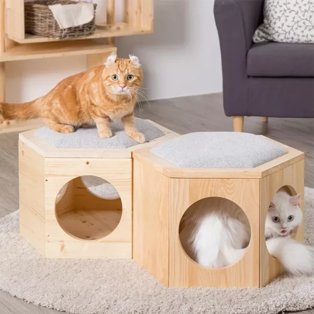Unlike generic cat trees, our Cat Climbing Castle stands out with its superior craftsmanship, eco-friendly materials, and elegant design that complements your home decor. The solid wood construction not only adds a touch of luxury but also guarantees stability and safety for your pet, making it a special haven for them to enjoy day in and day out.
