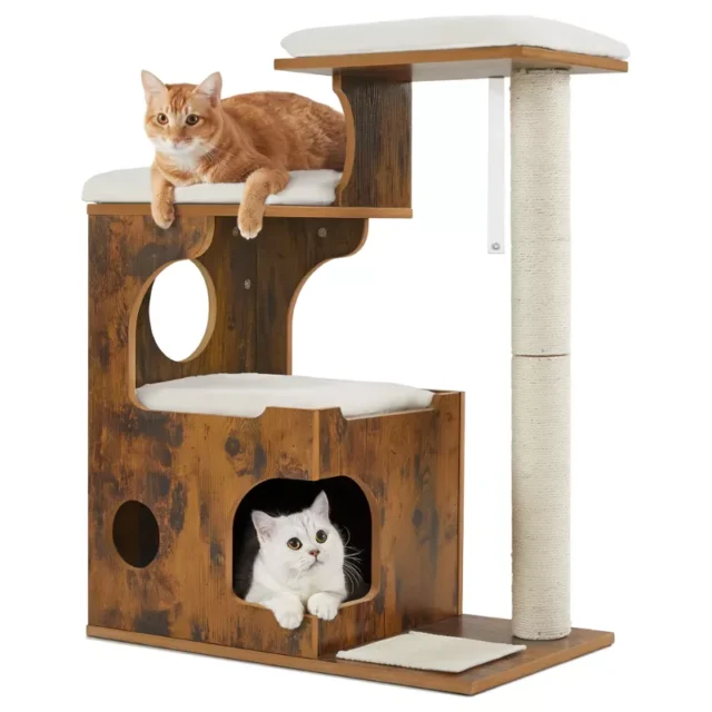 Perfect for all seasons and suitable for indoor use, this cat tree provides a private, entertaining space for your cat to play, rest, and watch the world from a safe, elevated perch. It’s ideal for homes with limited space, offering your cat a mini-adventure land without taking up too much room.