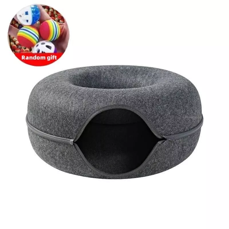Introducing our versatile and cozy Multi-Functional Donut Cat Bed & Interactive Tunnel, the perfect indoor sanctuary for your feline friend. Combining comfort and play in one, this cat bed and tunnel duo is designed to cater to your cat’s playful and restful needs, all while adding a stylish touch to your home.