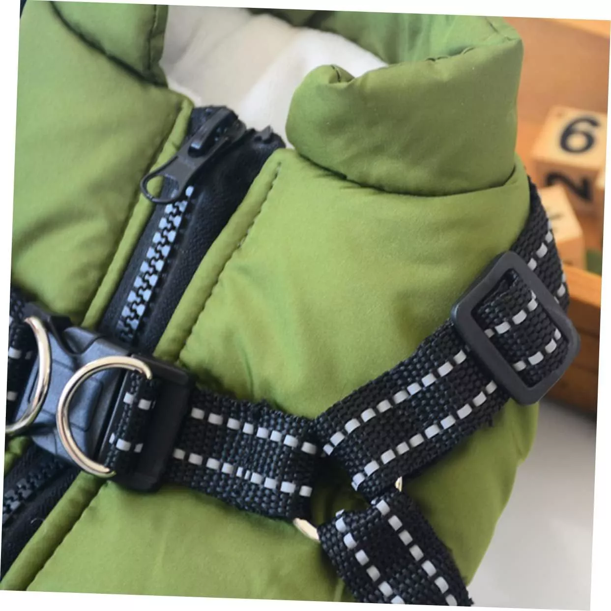 Built-in Harness Functionality: The jacket doubles as a harness, complete with reflective and adjustable features, making it easy to attach different leashes for hassle-free walks.