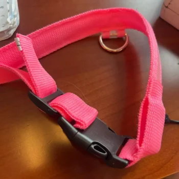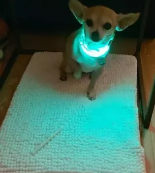Walking at 3 a.m. has become safer with this brightly lit collar, making us visible to traffic.
