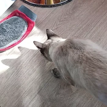 Not a bad alternative to a cat comb. If there were more spikes on the palm, it would be possible to capture more hair from the cat.