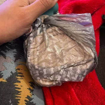 I really love this pooper scooper. A giant step up from a bag in hand. I attached it to my doggie bag with a rubber wrist band. It just made it easier to carry and use without detaching. I ordered the small because my little Jake is a small dog. Pick up is swift and clean most of the time. The scooper expands if you have to pick up from two spots. I tie off while closed and leave it there until I get to the waste can. I ordered another to keep in my car. Oh, after I ran out of the small bags that fit into the scooper and couldn’t find more in that size, I just started using the bags I already had like the one in the picture. They don’t fit into the handy dispenser on the scooper, but they can fit in your bag or pocket.
