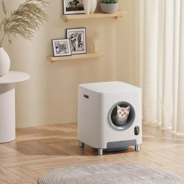 Whether you have a busy schedule, are tired of dealing with messy litter boxes, or simply want the best for your cat, this litter box is for you. It’s ideal for large cats, multi-cat households, and anyone seeking a hygienic, odor-free home. With its sleek white design, it also fits beautifully into any home decor.
