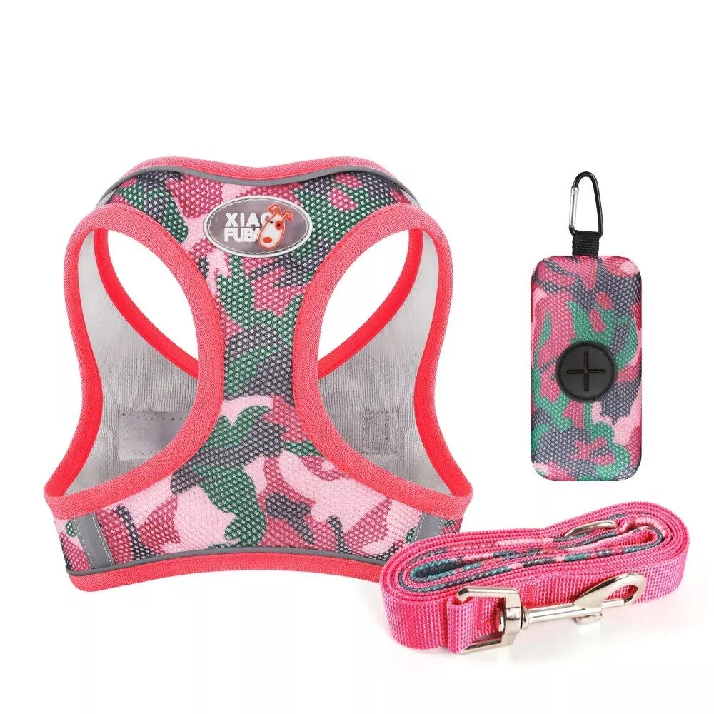 The Three-Piece Camouflage Pet Adventure Set is available in four vibrant colors: Blue, Pink, and Green. The camouflage pattern adds a touch of adventure and style, making your pet stand out in the crowd. The set is not only stylish, but also features reflective padding, ensuring your pet’s safety during nighttime walks.
