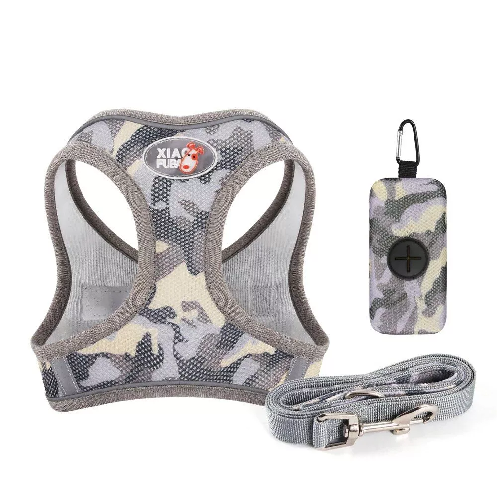 Our harness is made from high-quality mesh cloth, providing a breathable and comfortable experience for your pet, ensuring they stay cool and comfortable even during extended walks. The simple buckle design allows for easy traction, making it hassle-free for you to secure your pet and head out for a walk. The set also includes a matching leash and a convenient poop bag dispenser, ensuring you have everything you need for a successful and enjoyable outing.